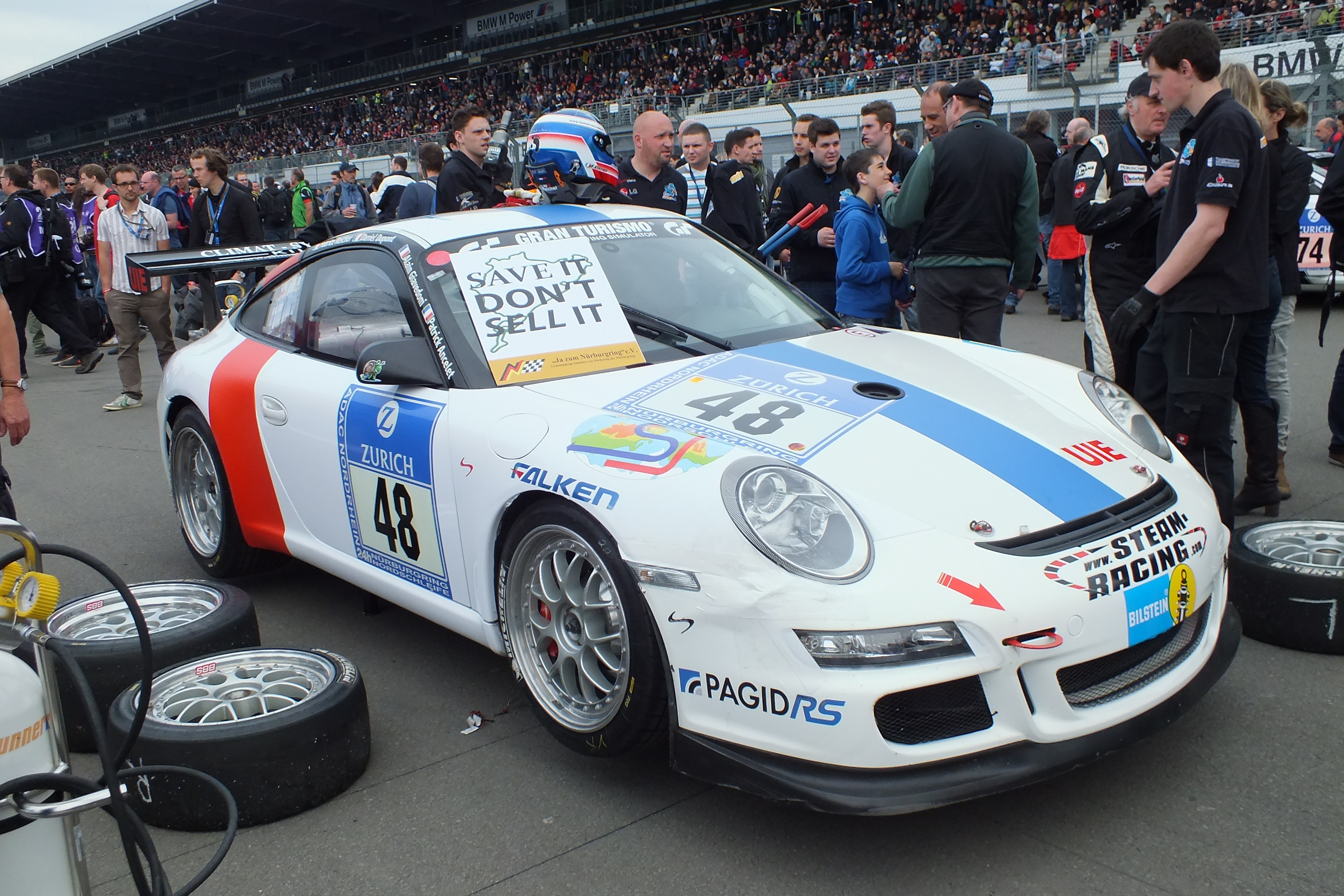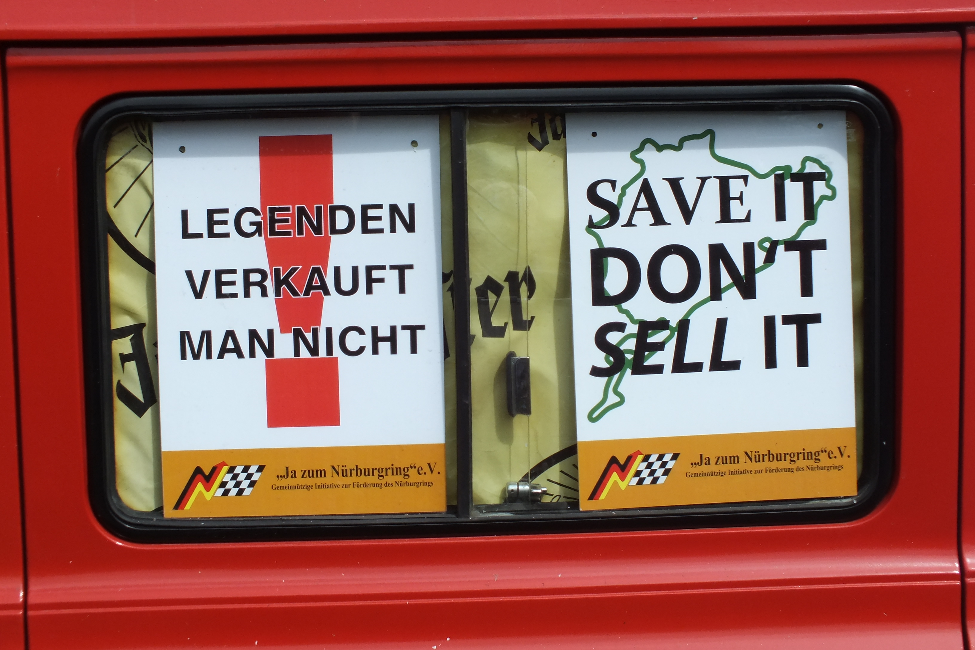 Sowohl die Fans, als auch die Fahrer haben Sorge, wie es am Ring weiter geht. Das rechte Schild klebt auch auf meinem Auto…
