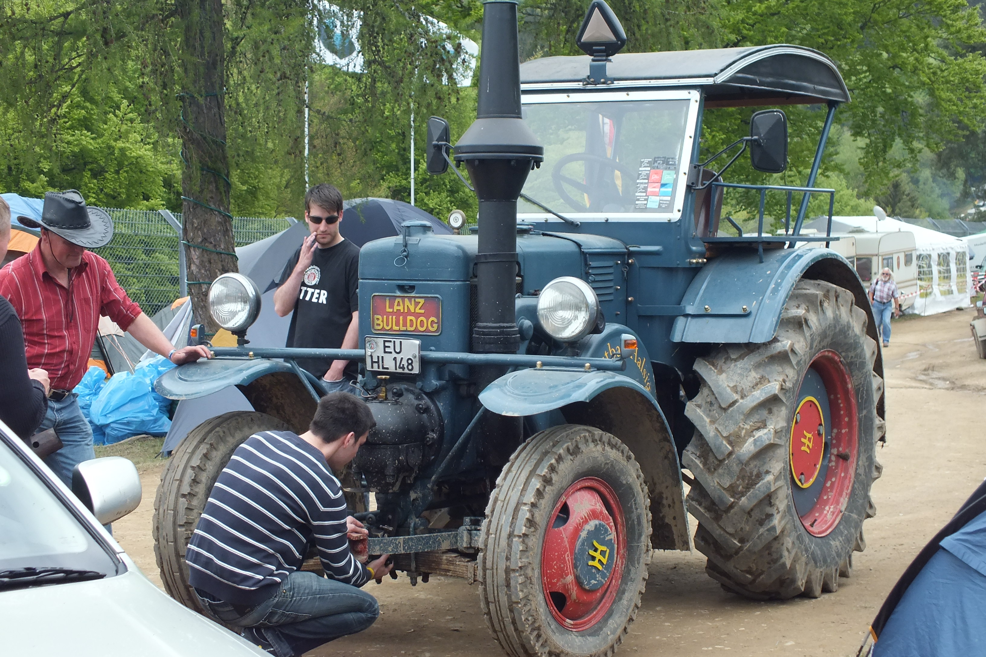 Ein uralter Lanz tuckert zum Karussell. Hier sehe ich auch die Porsches, ein toller Sound, wie sie über den Beton plockern.