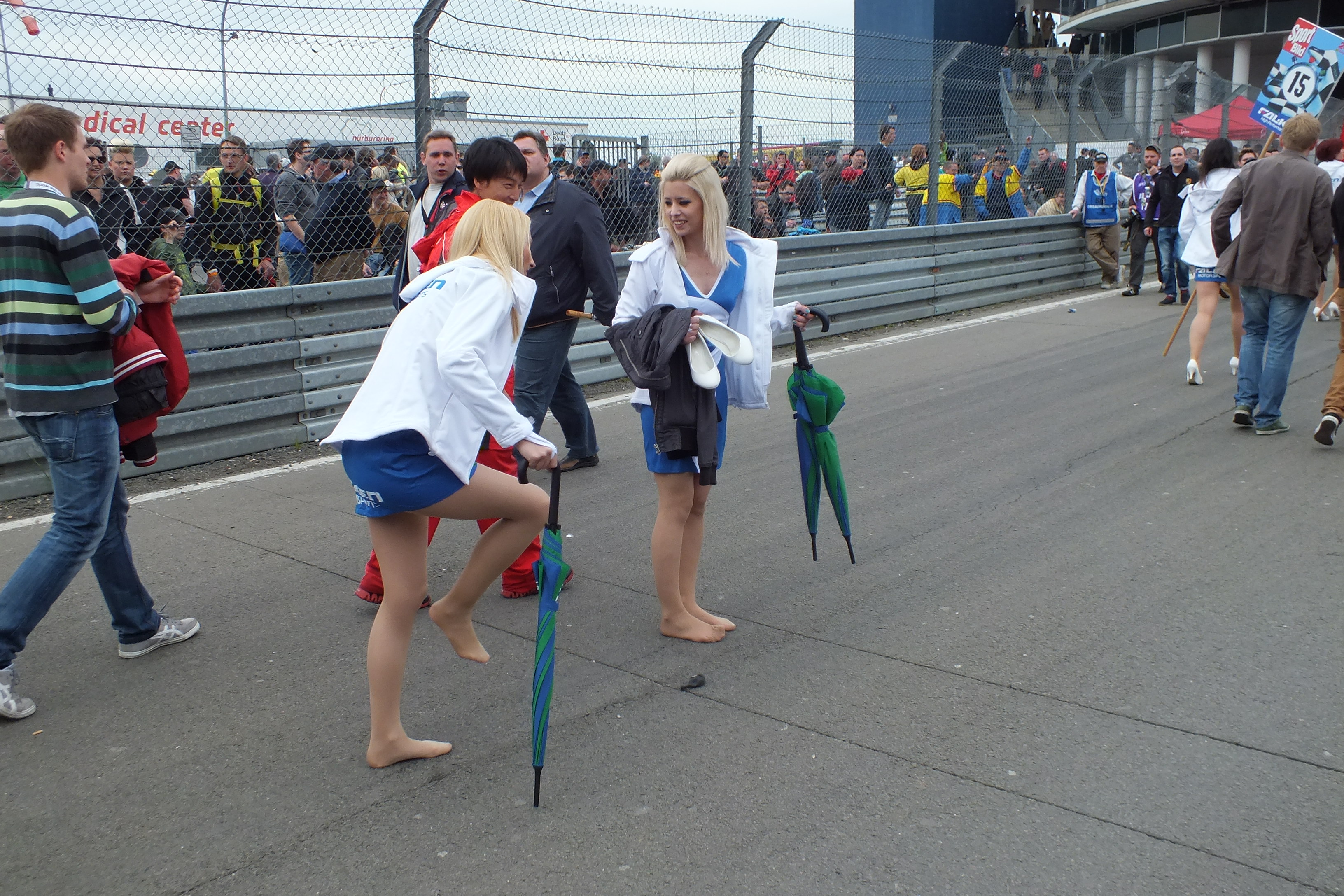 Augen auf bei der Berufswahl Mädels! Die weißen Pumps der Grid girls sind wohl unbequem…