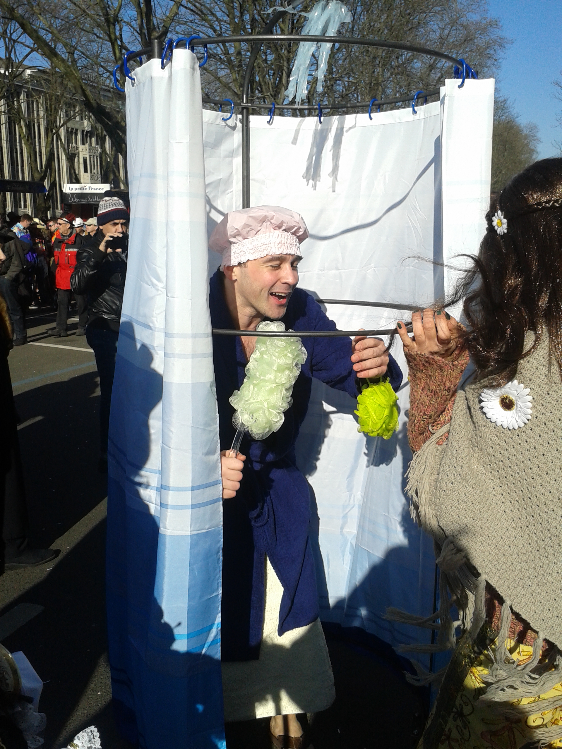 Immer gepflegt diese Düsseldorfer, ein aufwändiges Dusch-Kostüm auf der Kö.
