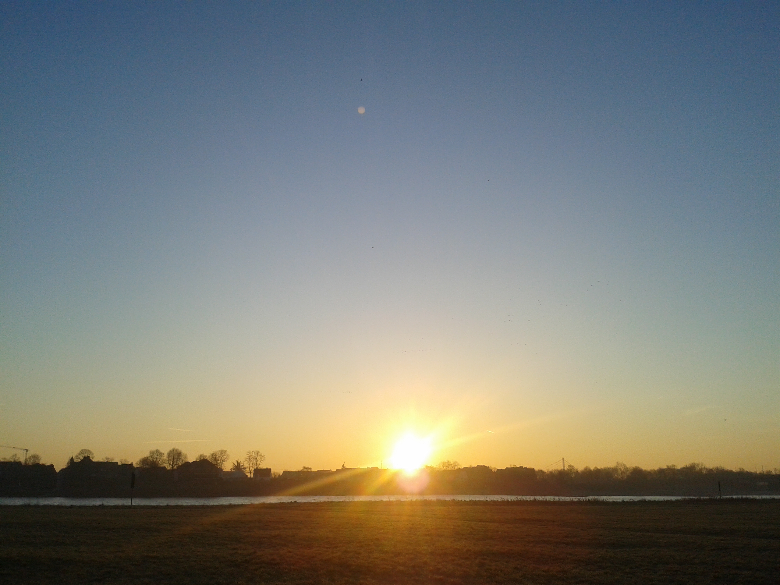 Der Tag begann kalt, mit einem spektakulären Sonnenaufgang über dem Fluß.Sonne