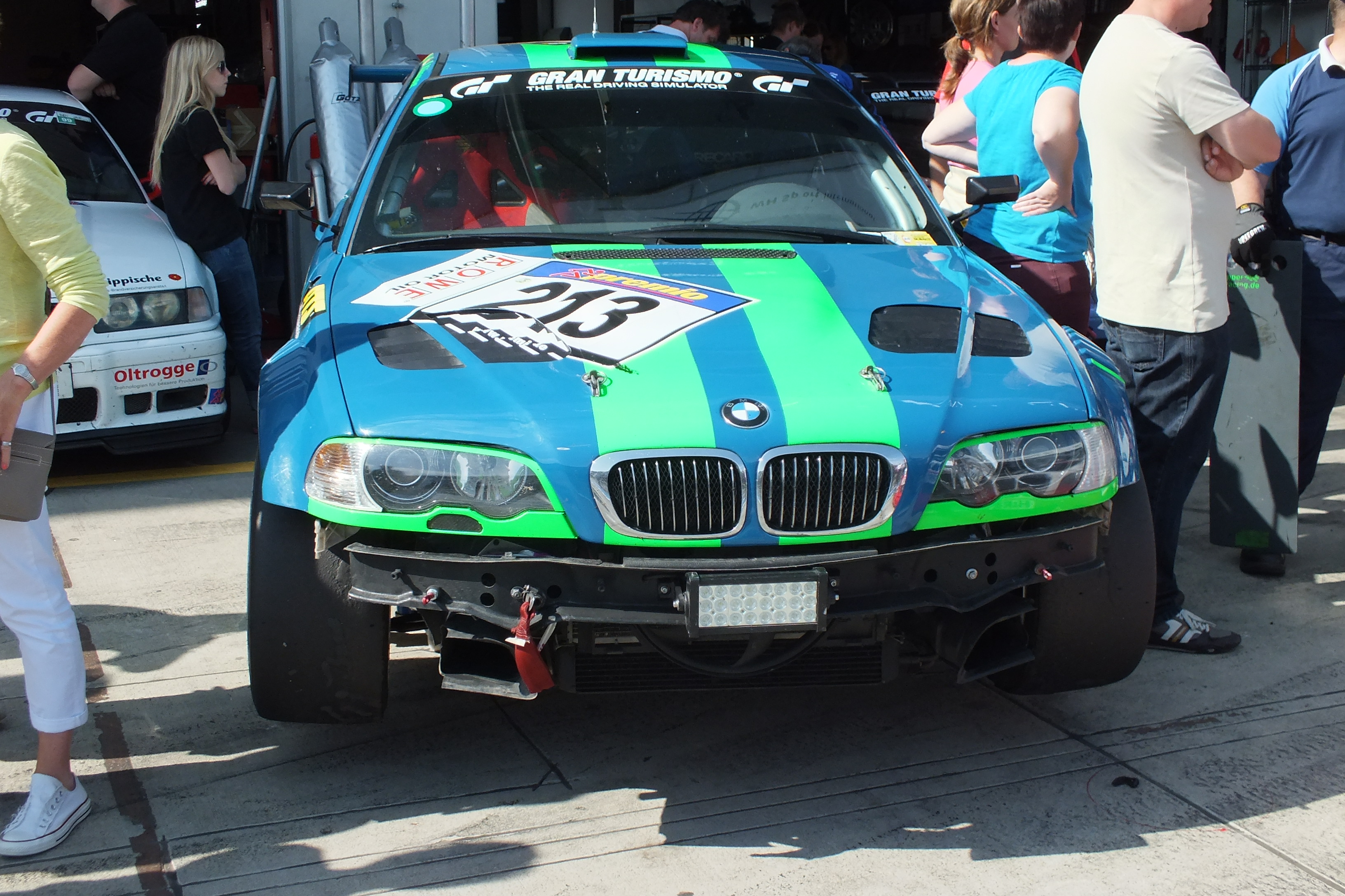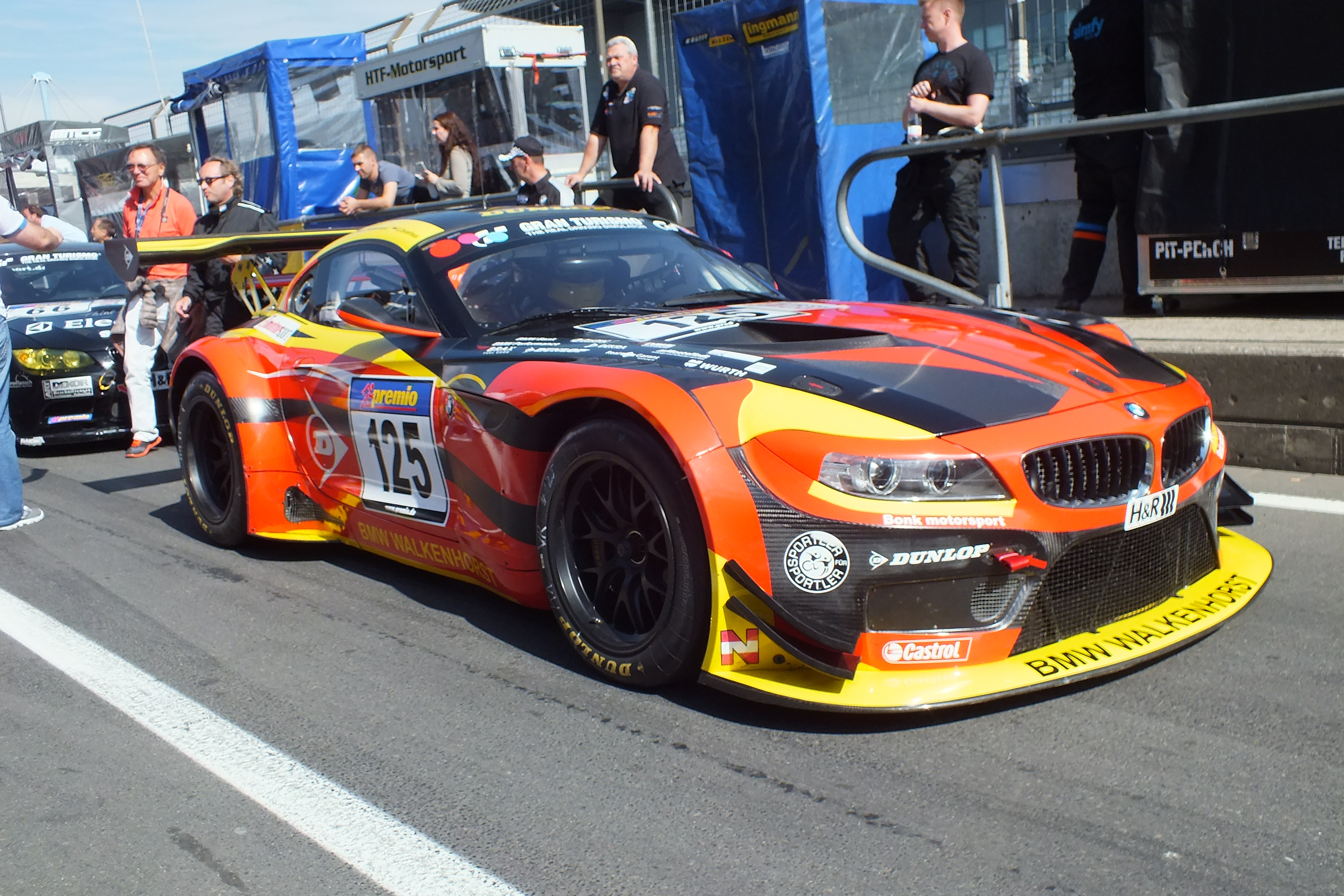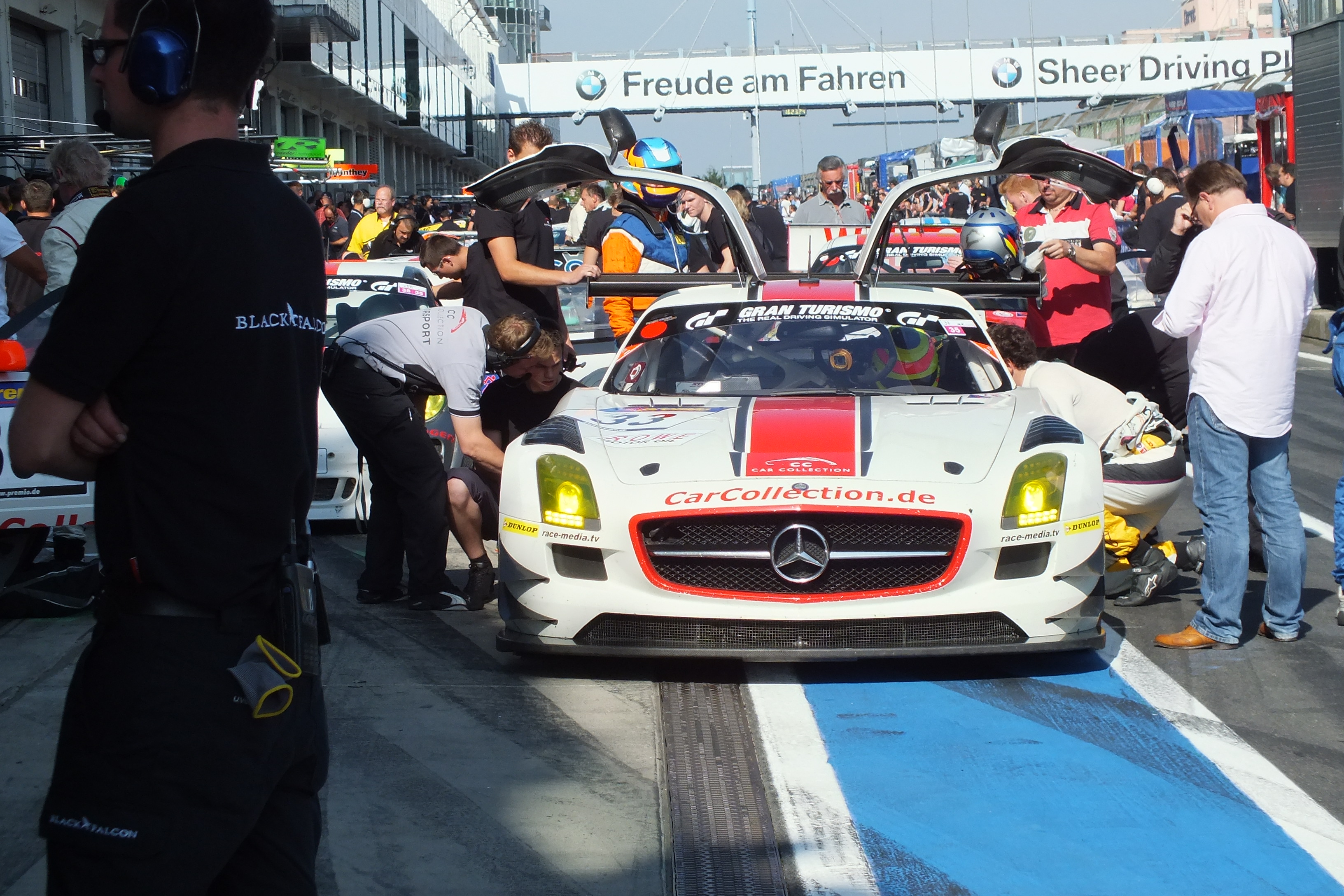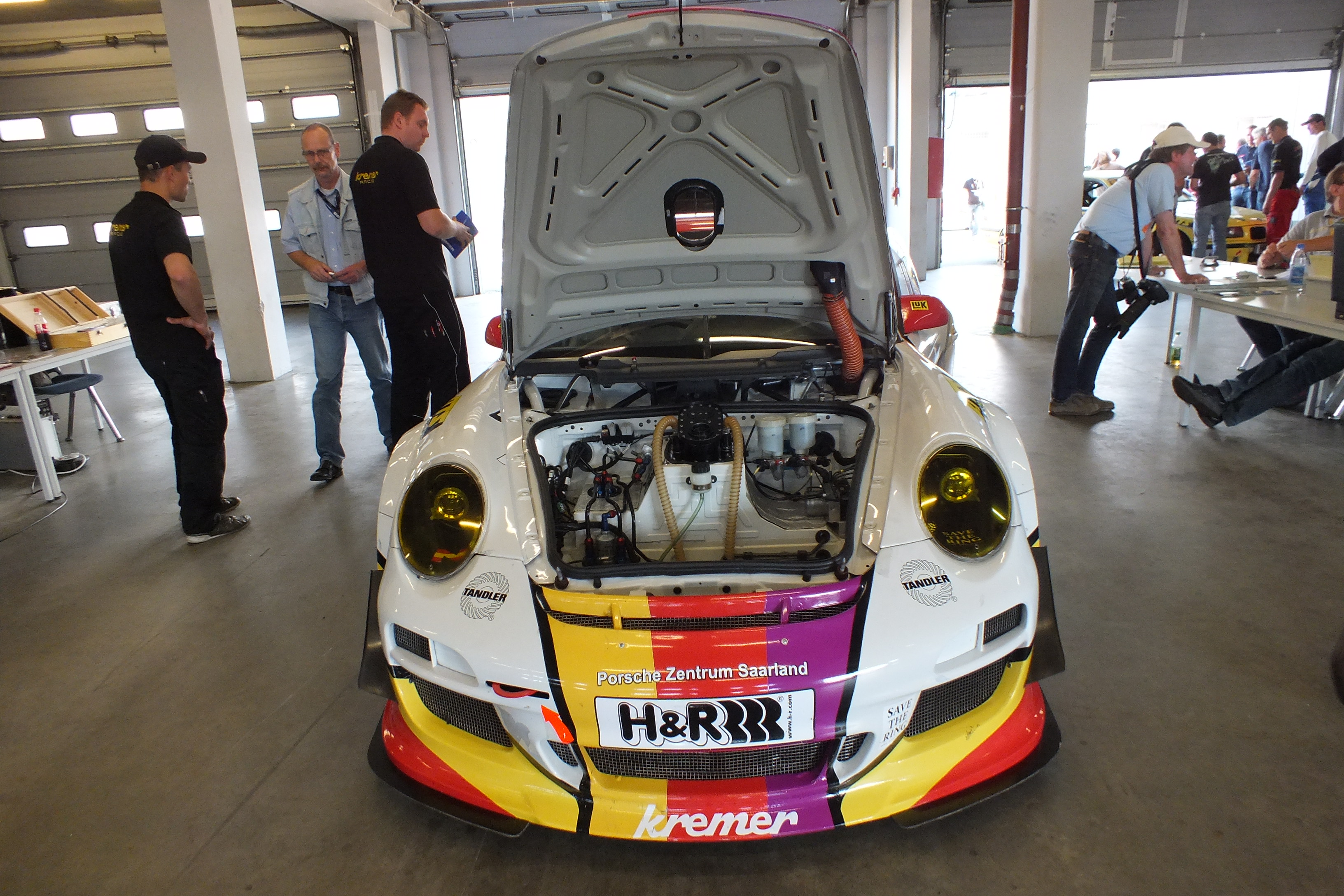 Brandkatastrophe schon auf dem Parkplatz? Nein, die Feuerwehr Aachen macht einen Betriebsausflug zur VLN.