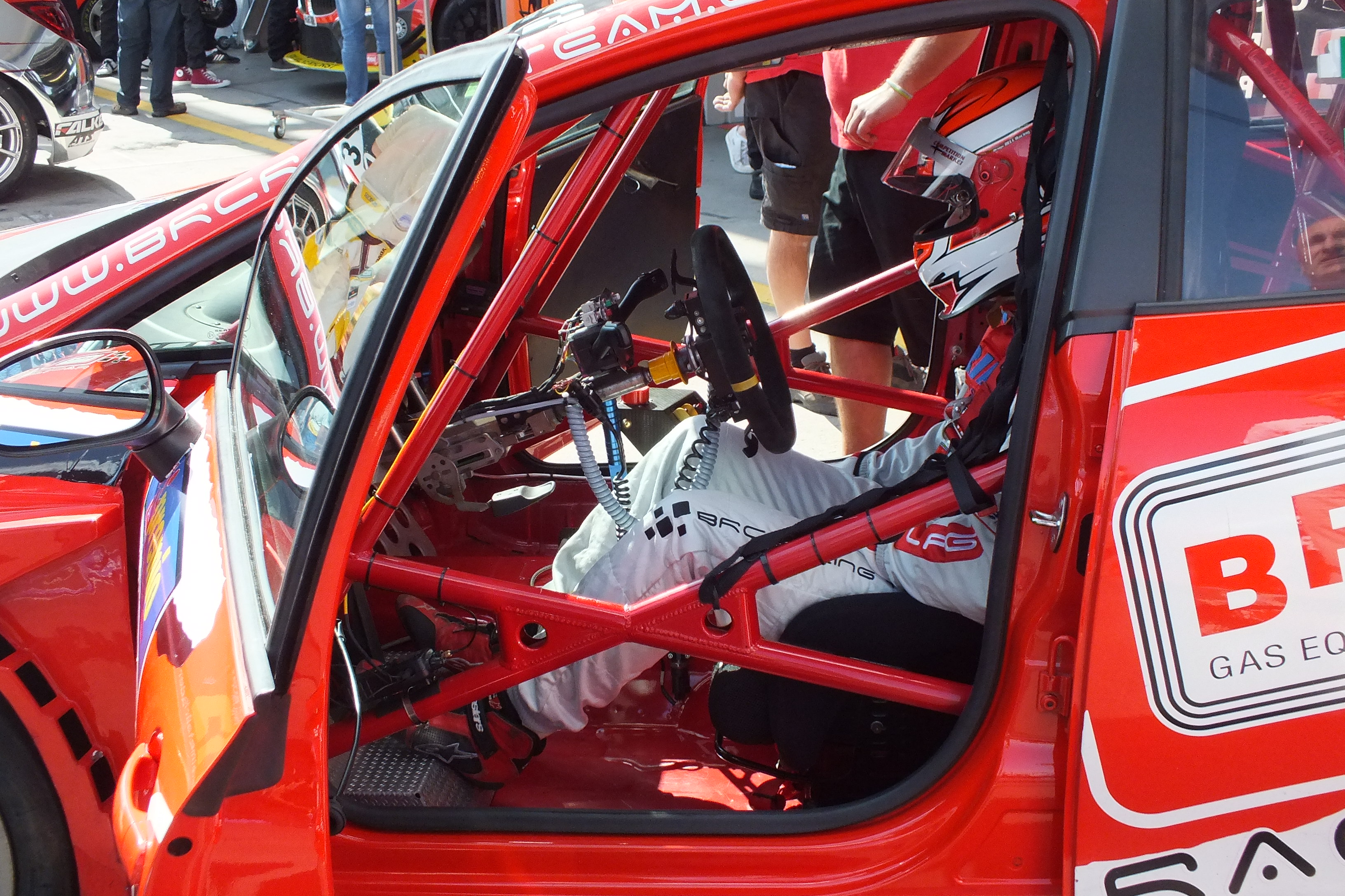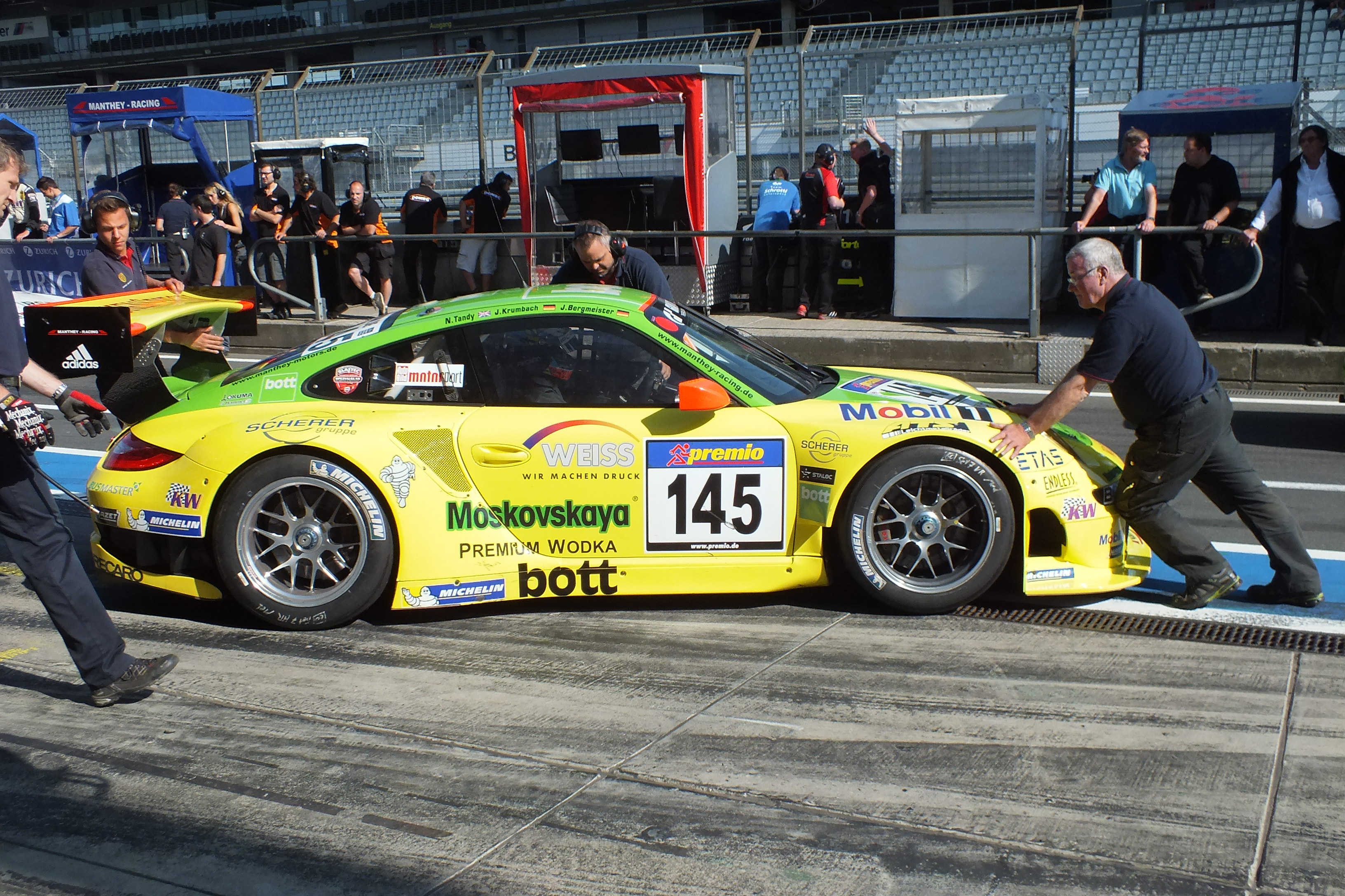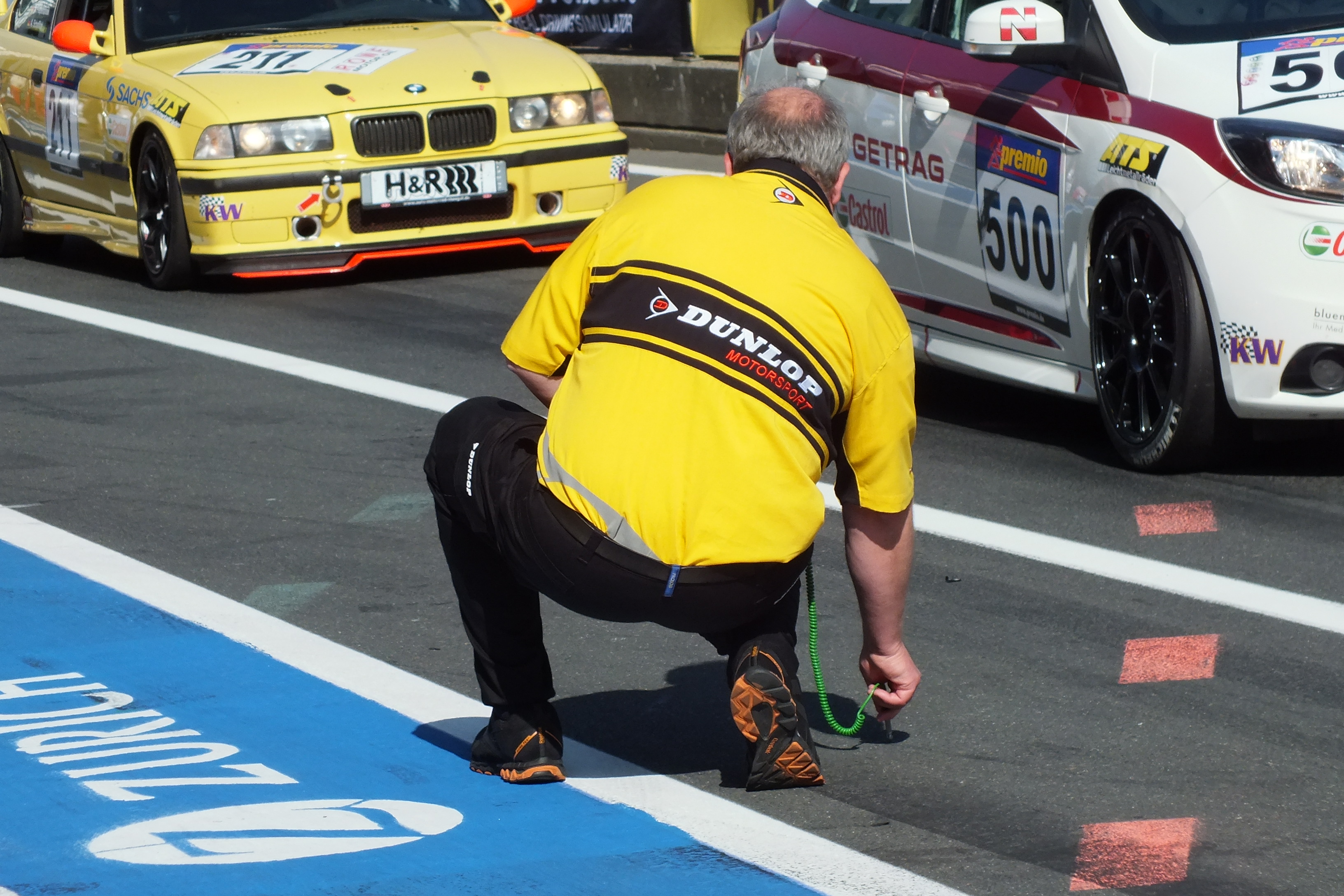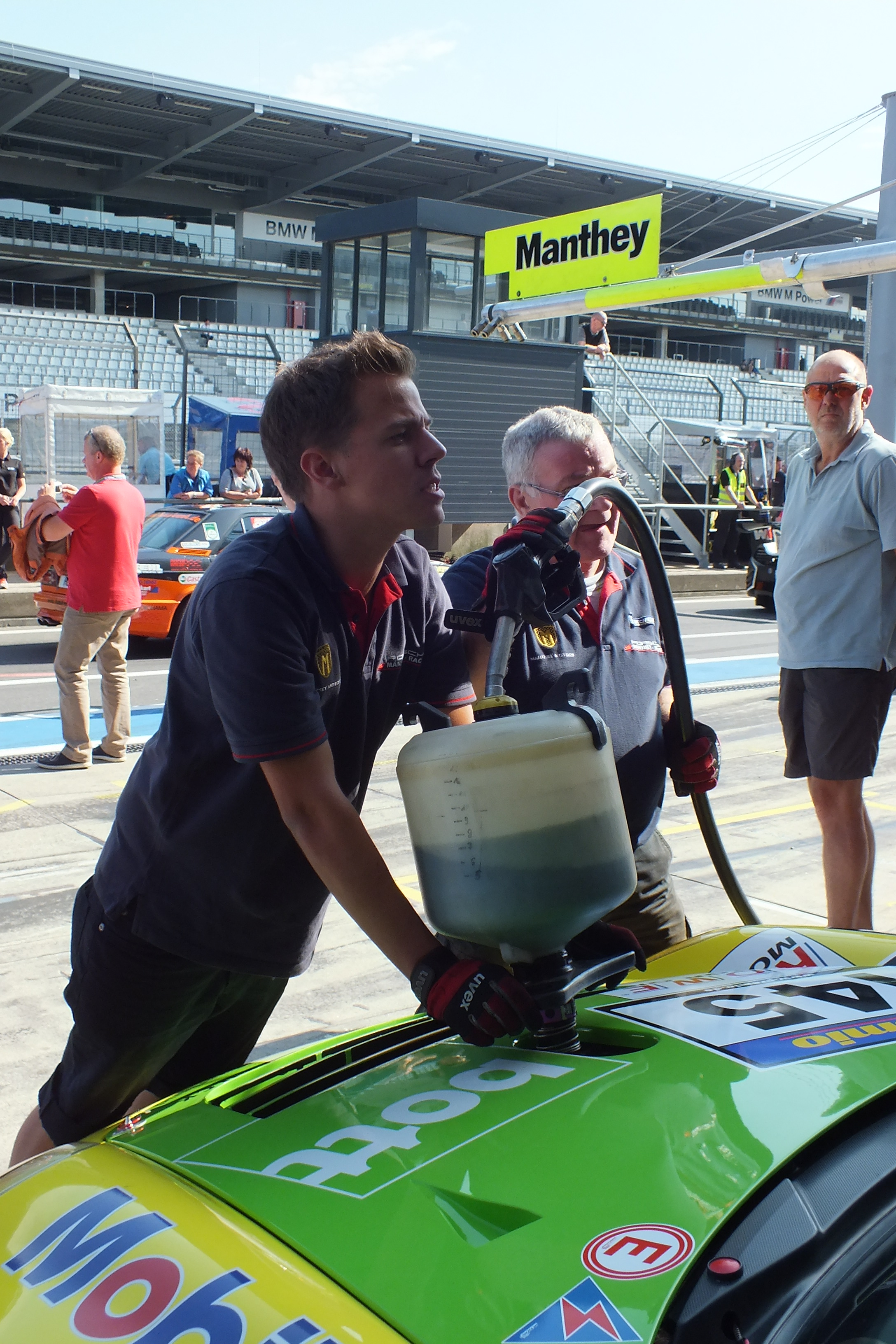 Brandkatastrophe schon auf dem Parkplatz? Nein, die Feuerwehr Aachen macht einen Betriebsausflug zur VLN.